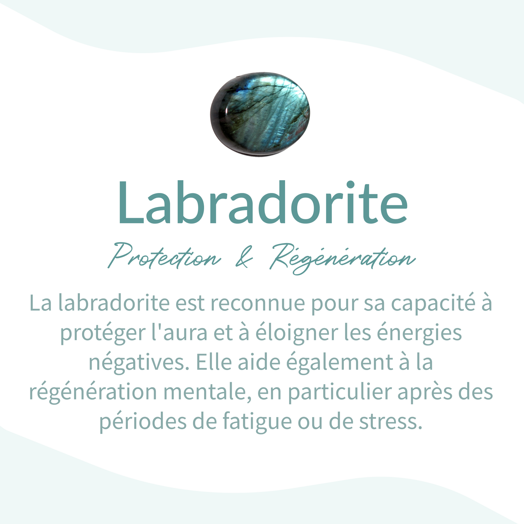 Thanks to its iridescent glow, labradorite also stimulates creativity and imagination, making it ideal for those searching for inspiration or wishing to add a unique touch to their style.