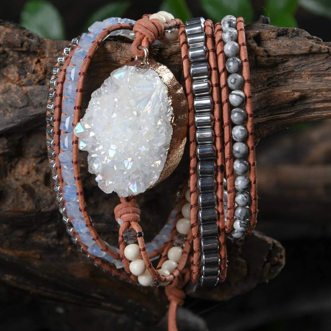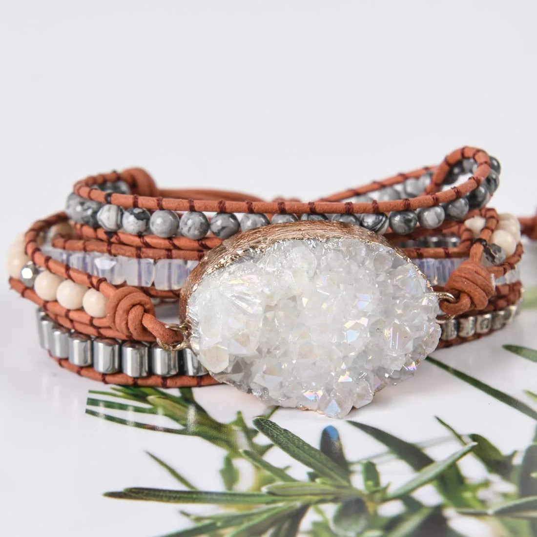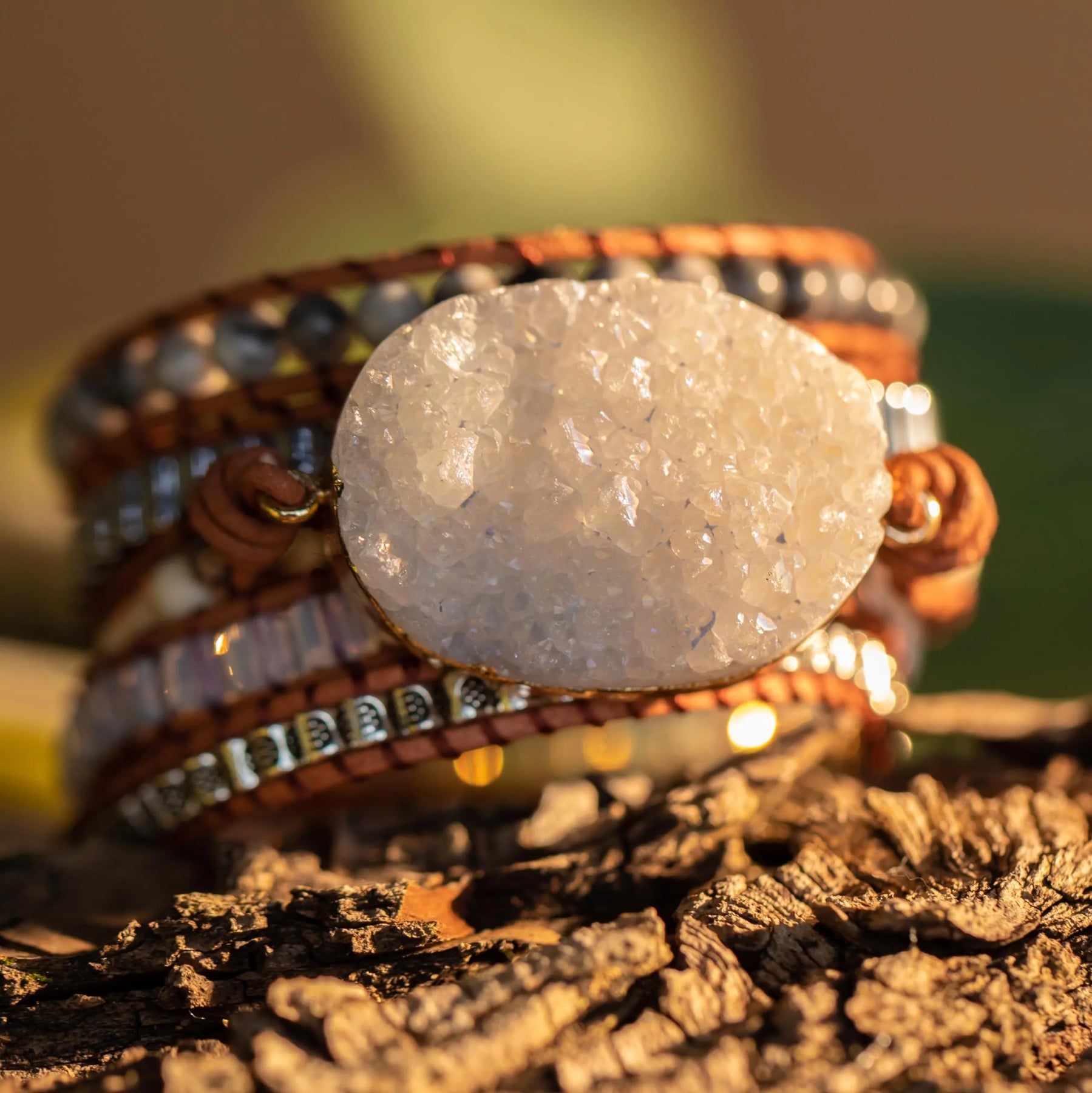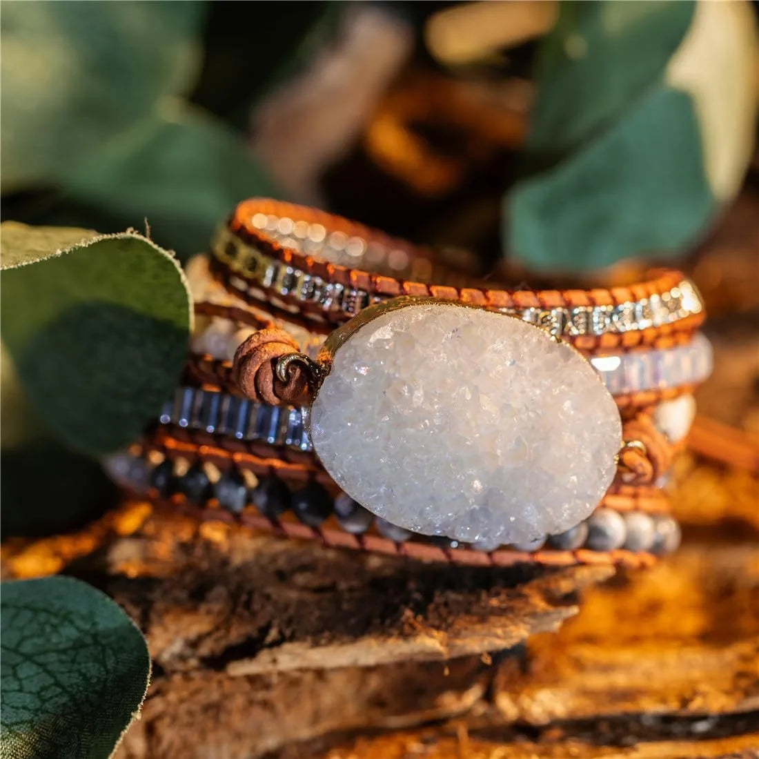 Druzzy & Map Stone Boho Wrap Bracelet – For Purity & Strength