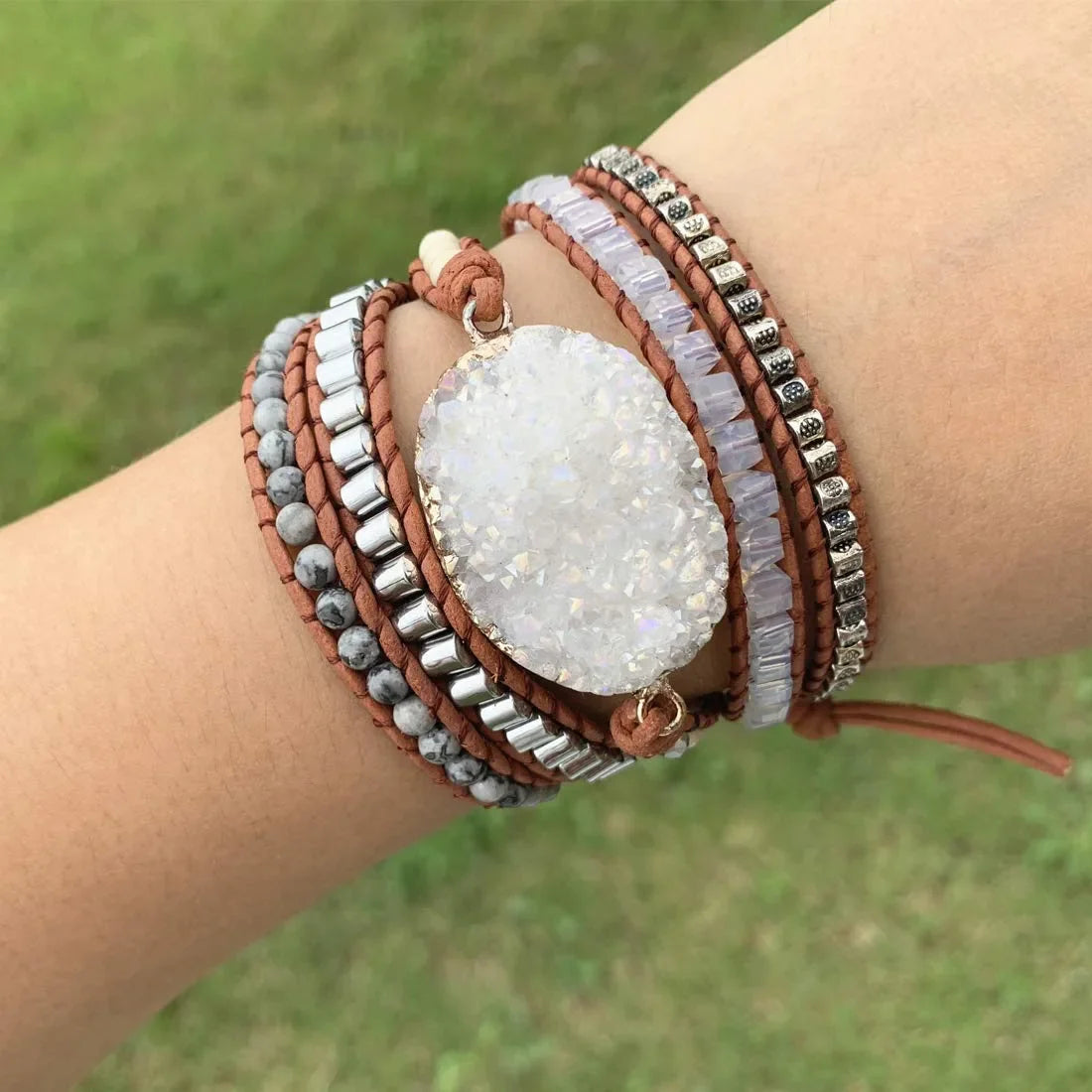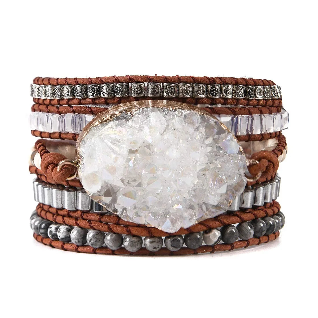 Druzzy & Map Stone Boho Wrap Bracelet for Purity & Strenght