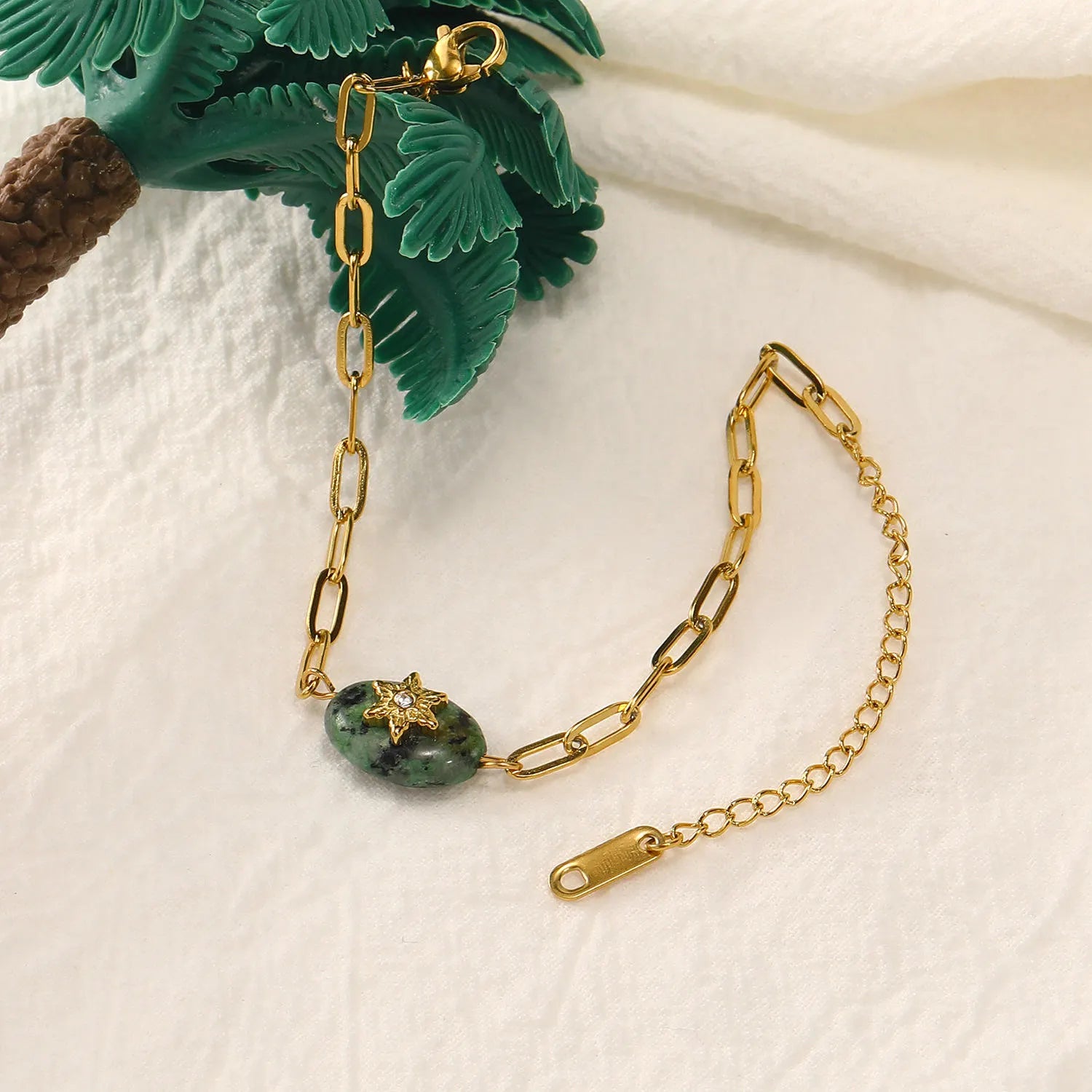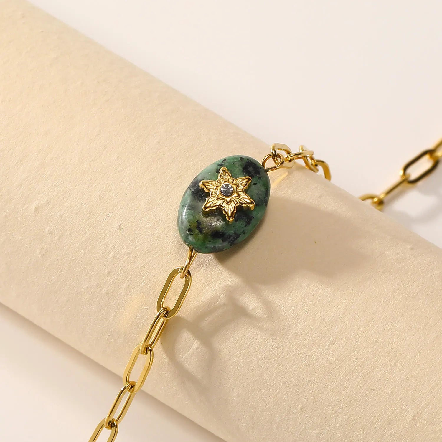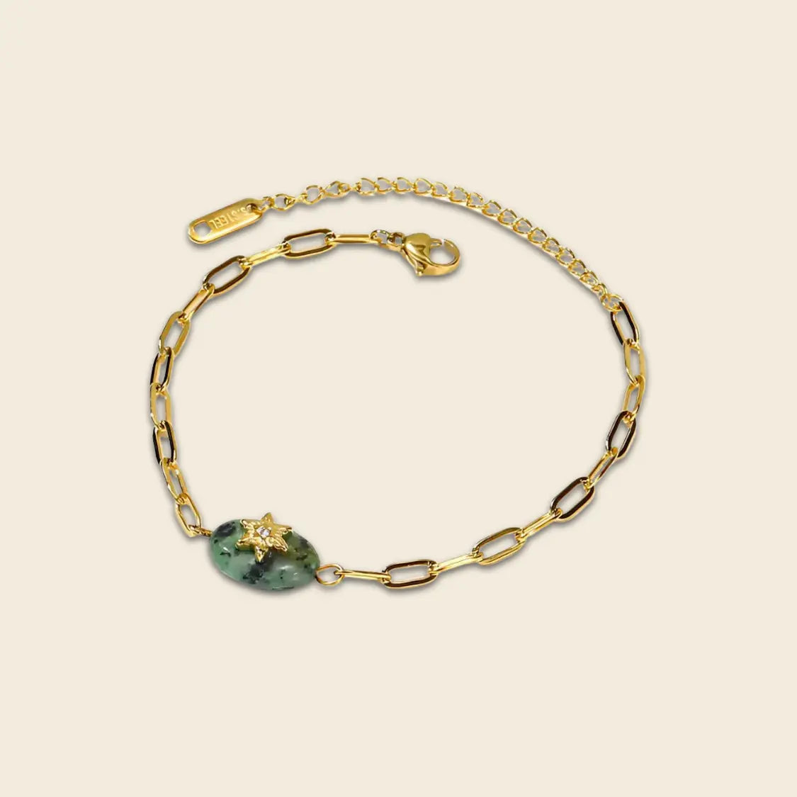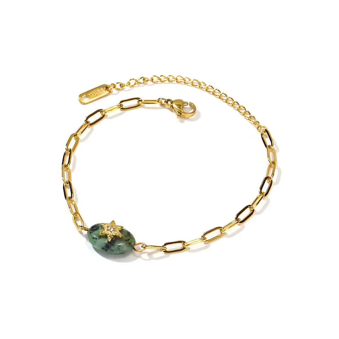🔘 Bead Size: Natural Turquoise Stone with gold-plated charm