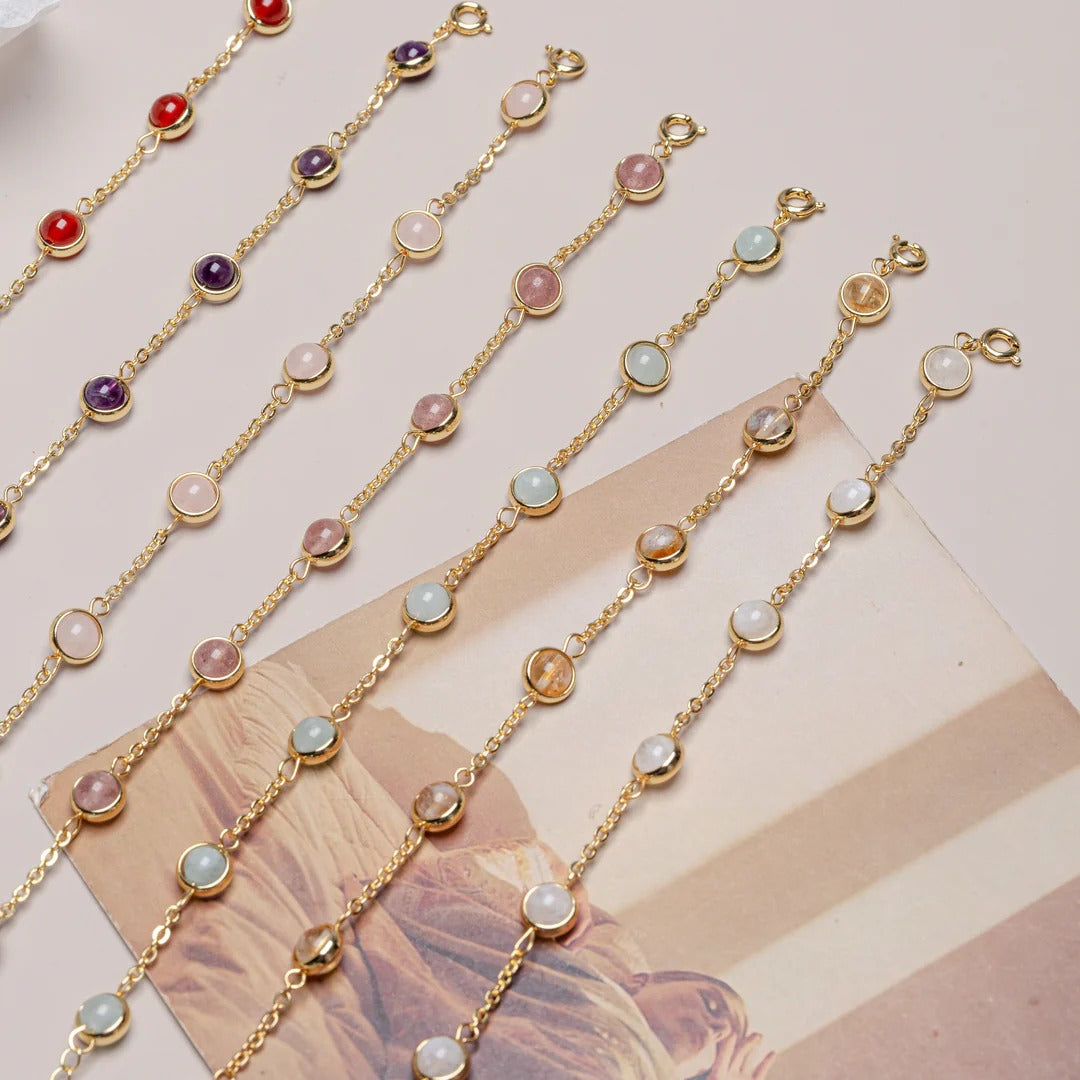 Handcrafted with genuine Green Aventurine, this bracelet is celebrated as the Stone of Opportunity. Known to attract luck and abundance, it also supports emotional healing and resilience — making it a powerful ally for growth and renewal.