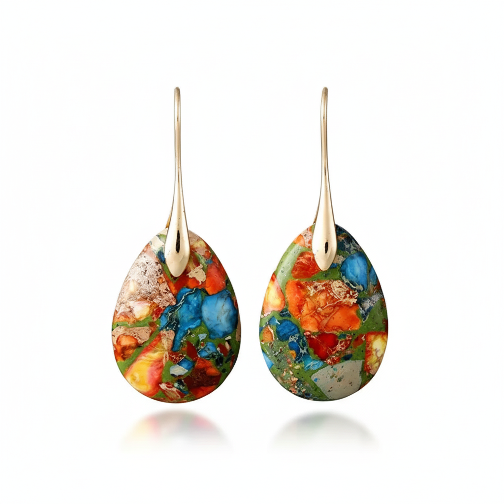 Meet the “Harlequin Drops” Earrings – a burst of color and energy to brighten your day. Made from multicolored jasper, they combine the stone’s natural beauty with a joyful, artistic touch.