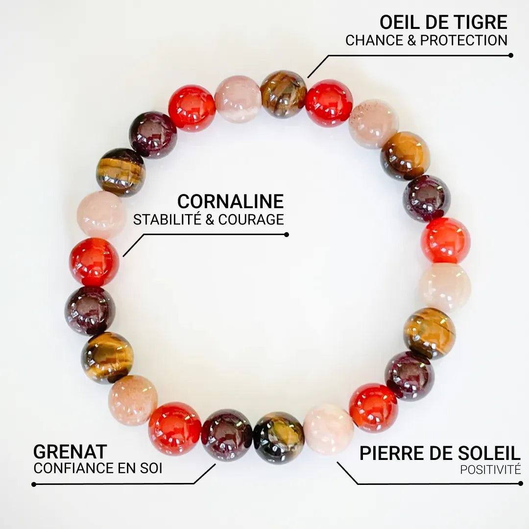 "Luck & Joy" Bracelet in Tiger Eye, Sunstone, Carnelian & Garnet