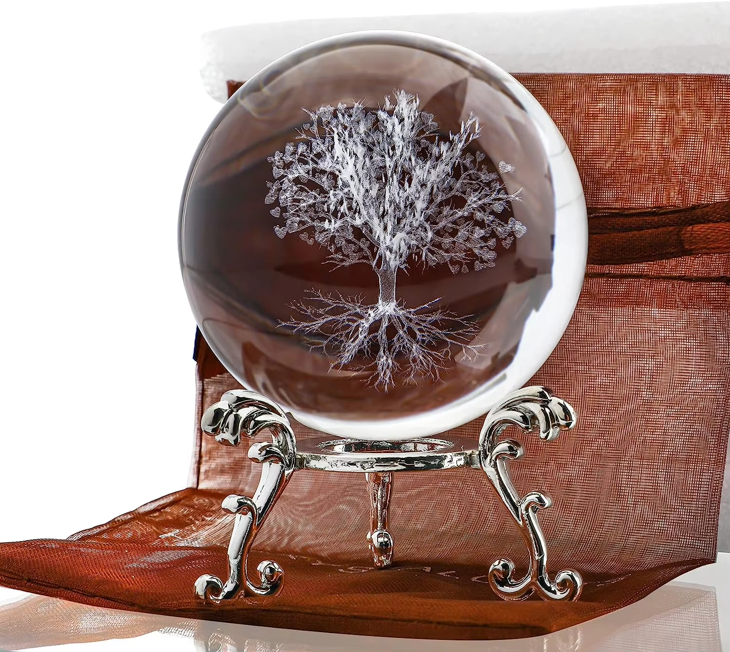 Illuminate your living space with this stunning Crystal Ball featuring the Tree of Life, a universal symbol of wisdom, protection, and strength and the connection between heaven and earth.
