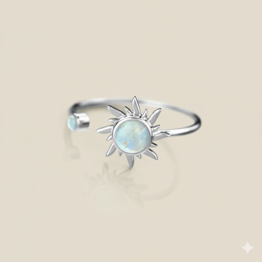 Embrace new beginnings with the Moonstone Sunrise Ring. Crafted with two moonstone crystals in sterling silver, this ring promotes balance, harmony, and emotional well-being. Wear it as a symbol of your commitment to personal growth and self-discovery, and let it inspire you to approach each day with wonder.